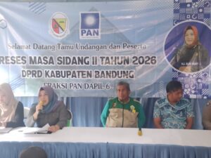 Hj. Elin Wati, Anggota DPRD Kabupaten Bandung, Senin, 23 Februari 2026, Reses Masa Sidang II Tahun 2026 DPRD Kabupaten Bandung Fraksi PAN Dapil 6, di Madrasah At Taqwa Kp. Cikawao, RT 2 RW 12, Desa Cikawao, Kecamatan Pacet, Kabupaten Bandung.