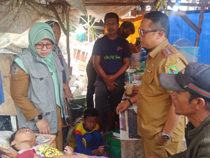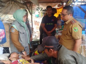 Ningning Hendasah Kadinsos Kabupaten Bandung, didamping Camat Ciparay Anjar Lugiyana, S.Ip. M.Ip. Sekcam Ciparay Suryana, SE. Kanit Trantib SATPOL-PP Kecamatan Ciparay Sandi Silahudin, S.STP. mengunjungi Nabila Ahmadani 16 Tahun, Yatim Piatu.