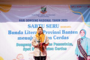 Wartain Banten | Pemerintahan | 6 Desember 2025 — Bunda Literasi Provinsi Banten, Tinawati Andra Soni, bersama komunitas Banten Ceria menyelenggarakan kegiatan mendongeng untuk memperingati Hari Dongeng Nasional 2025. Acara tersebut berlangsung meriah di halaman Gedung Negara Provinsi Banten, Sabtu (6/12/2025), dan diikuti puluhan anak yang antusias menikmati cerita penuh pesan moral.