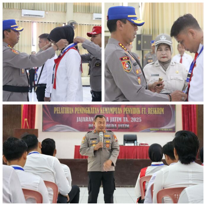 Warta In || MOJOKERTO – Guna menjawab tantangan penegakan hukum di era modern, sebanyak 100 personel penyidik dan penyidik pembantu di jajaran Polda Jawa Timur secara resmi memulai Program Pelatihan Peningkatan Kemampuan (Latkatpuan) T.A. 2025 di Gedung Dharma Sekolah Polisi Negara (SPN) Polda Jatim, pada Senin (6/10/2025) pagi.