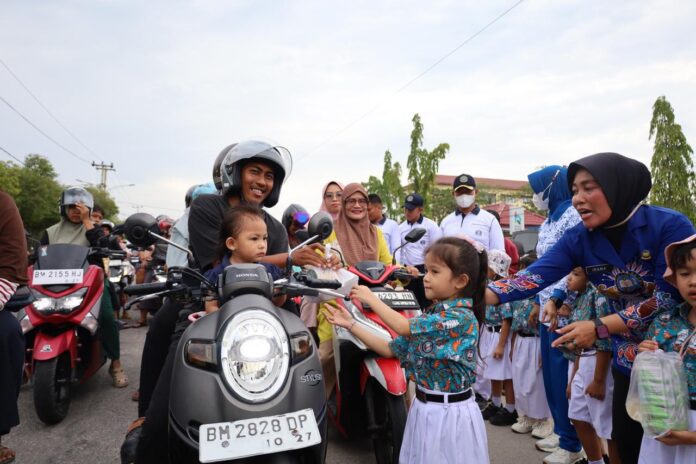 sementara itu Kasatdik TK Hang Tuah Perwakilan Dumai Siti Rafiah S.Pd . Aud secara langsung melibatkan 43 murid TK Hang Tuah yang bertujuan untuk mengajarkan/ menumbuhkan rasa kepedulian berbagi antar sesama di bulan suci Ramadhan.