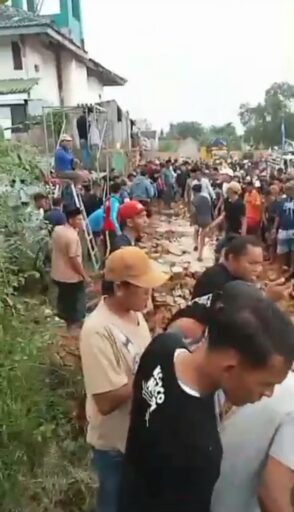 Akibatnya sekitar pukul 17.20 WIB, pagar tembok sepanjang 25 meter dengan tinggi 4 meter itu tiba-tiba ambruk menimpa penonton yang ada dibawahnya.