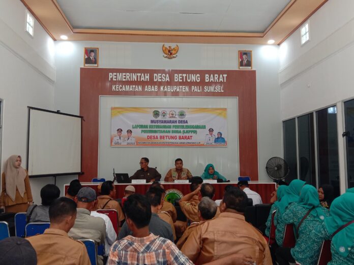 Sumatera Selatan, Warta.in, PALI – Pemerintah Desa Betung Barat sukses menyelenggarakan Musyawarah Desa (Musdes) dalam rangka penyampaian Laporan Keterangan Penyelenggaraan Pemerintahan Desa (LKPPD) Akhir Tahun Anggaran 2025. Kegiatan ini berlangsung khidmat di Balai Desa Betung Barat, Kecamatan Abab, Kabupaten Penukal Abab Lematang Ilir (PALI), pada Selasa (17/03/2026).