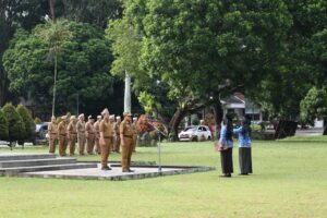 Upacara berlangsung di Halaman Kantor Bupati Lampung Barat, diikuti Sekretaris Daerah (Sekda) Drs. Nukman, M.M, Asisten, Staf Ahli Bupati, Kepala Perangkat Daerah serta seluruh ASN lingkungan Pemerintah Kabupaten Lampung Barat, Senin (24/02/2025).