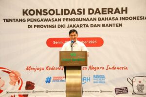Pernyataan tersebut disampaikan Dimyati saat memberikan sambutan pada Konsolidasi Daerah tentang Pengawasan Penggunaan Bahasa Indonesia di Provinsi DKI Jakarta dan Banten, yang digelar di Hotel Santika Premiere Bintaro, Jl. Prof. Dr. Satrio No. A3, Pondok Jaya, Kecamatan Pondok Aren, Kota Tangerang Selatan, Senin (29/9/2025).