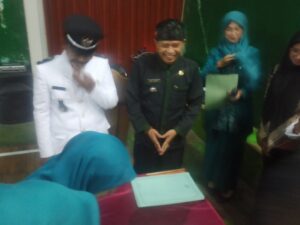 Serah Terima dilakukan Deni Natarul Zaman Pj. Kepala Desa Sukarame kepada Wawan Ridwan, disaksikan Asep Sutanto, S.STP. MM. Camat Pacet, beserta Kepala Desa Se-Kecamatan Pacet.